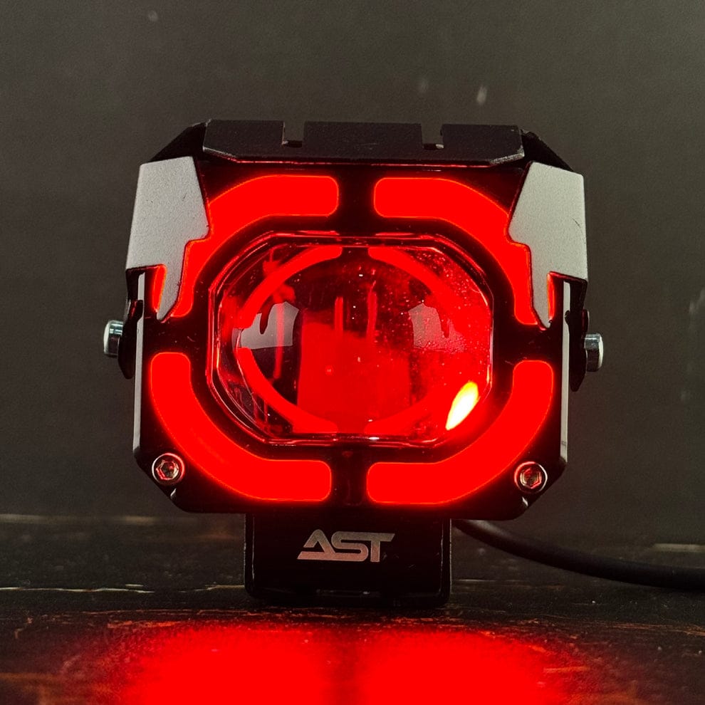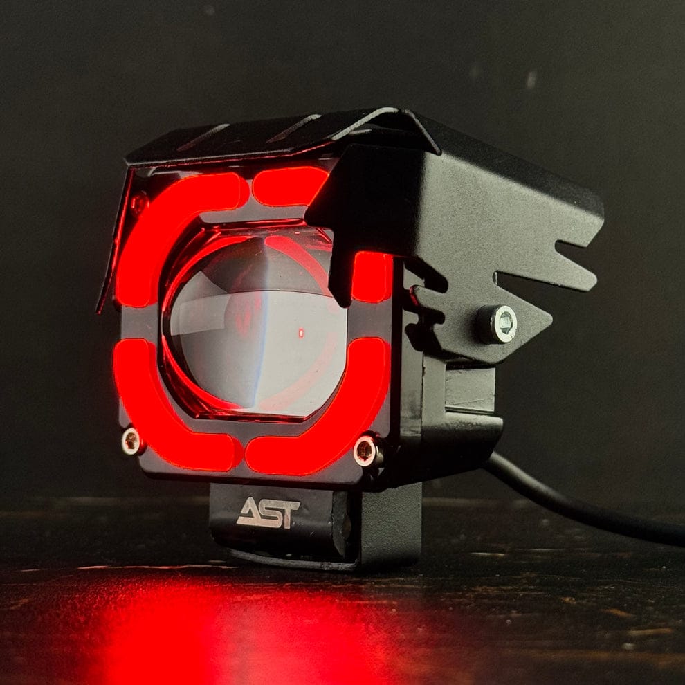 The AST Metal Projector Light with Red DRL combines high-performance illumination with aggressive styling. Built for riders who demand visibility and attitude, this projector light delivers a powerful beam and a bold red daytime running light (DRL) that stands out even in daylight.